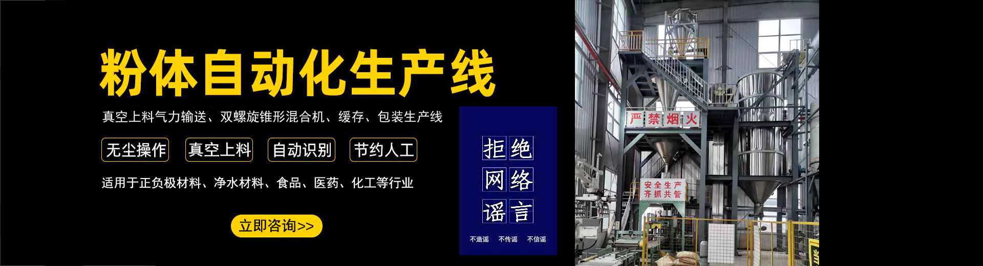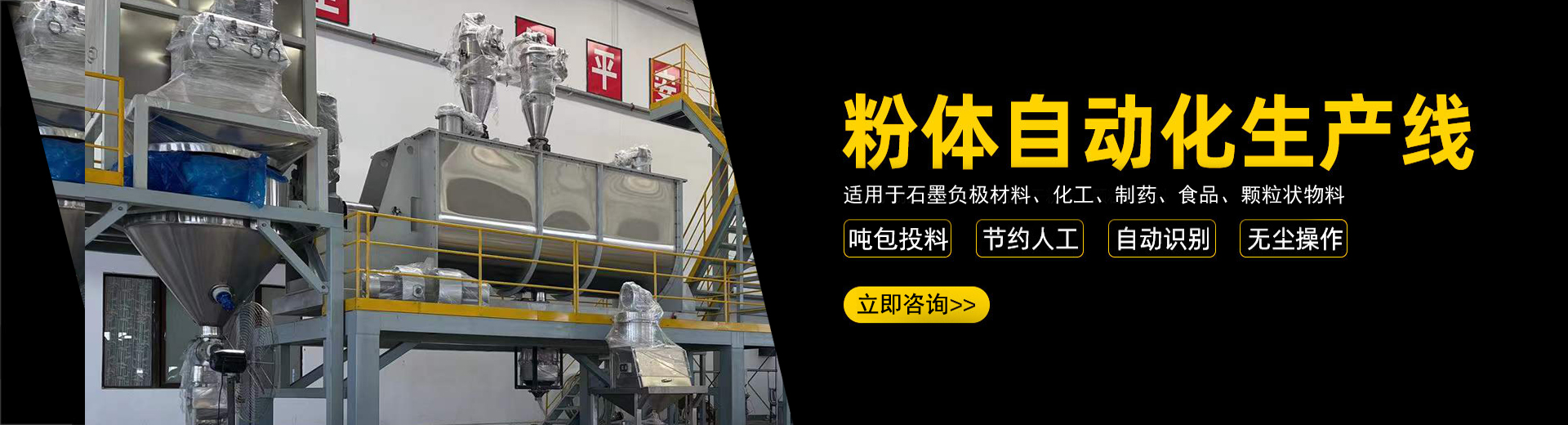 公司在制造混合設(shè)備和各類(lèi)機(jī)械氣力輸送生產(chǎn)線(xiàn)的經(jīng)驗(yàn)沉積下,自主開(kāi)發(fā)了全自動(dòng)化生產(chǎn)線(xiàn)。實(shí)現(xiàn)了自動(dòng)化拆垛、自動(dòng)化輸送、自動(dòng)化配料、自動(dòng)化秤重混合、自動(dòng)化篩分、自動(dòng)化包裝、自動(dòng)化碼垛一系列全自動(dòng)化生產(chǎn)線(xiàn)...